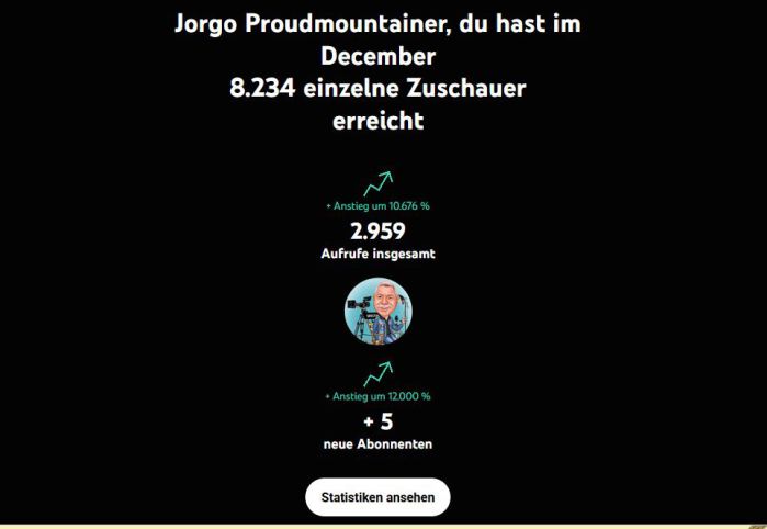 Wir haben allein in diesem Monat auf YOUTUBE 8234 Zuschauer erreicht