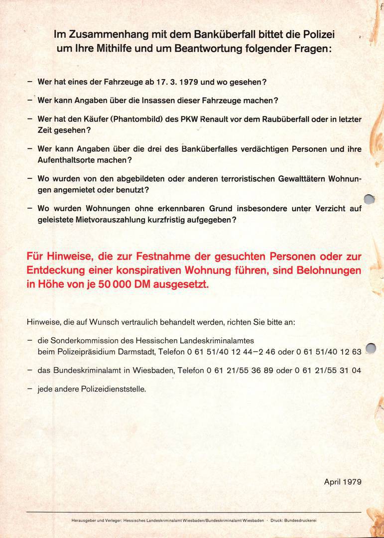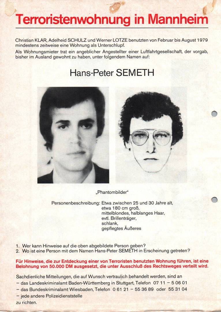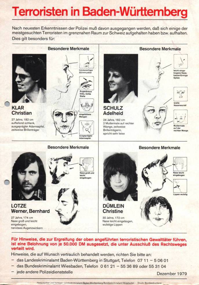 Fahndungsplakate RAF Dezember 1979