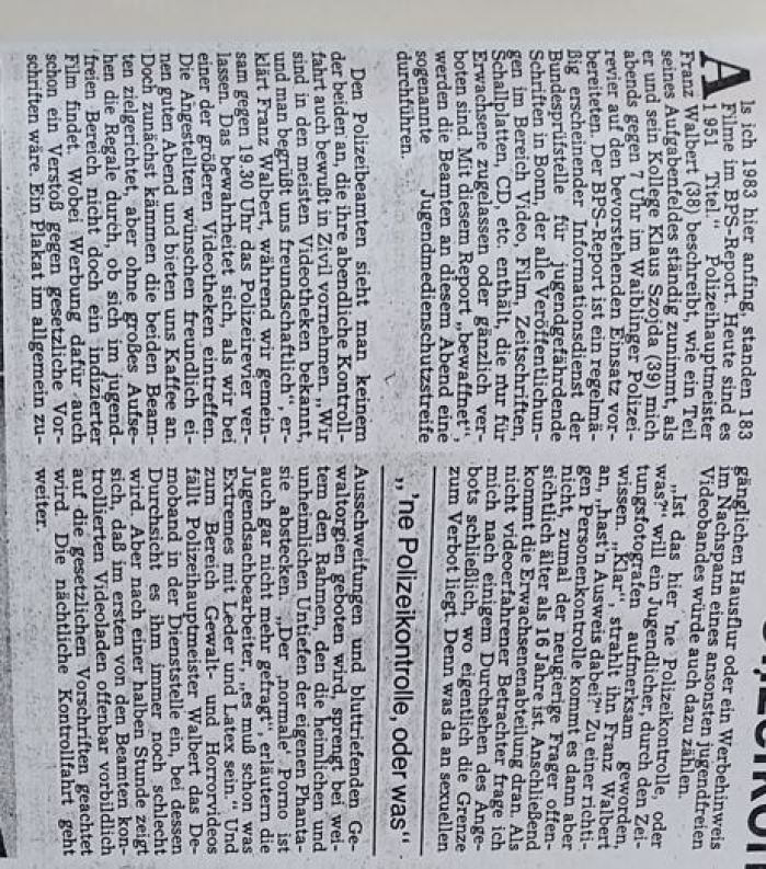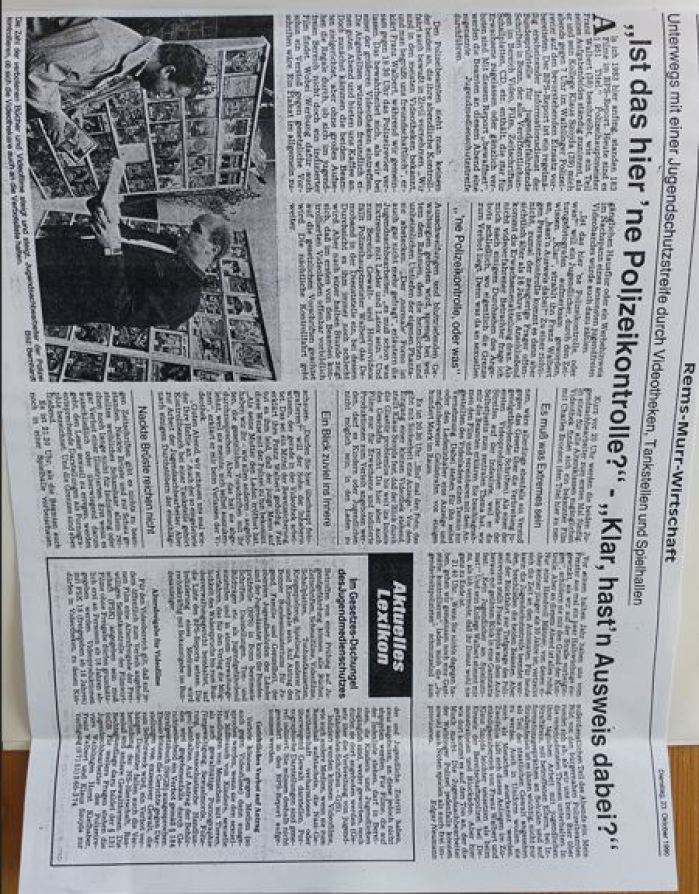 Waiblinger Kreiszeitung vom 23.10.1990: Polizeikontrolle in Videotheken, Tankstellen und Spielhallen....
