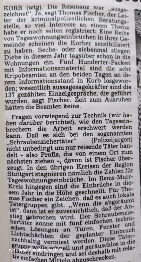 Waiblinger Kreiszeitung vom 26.03.1990: Tageseinbrüche in Wohnungen und Häuser gab es zu dieser Zeit aus schon.