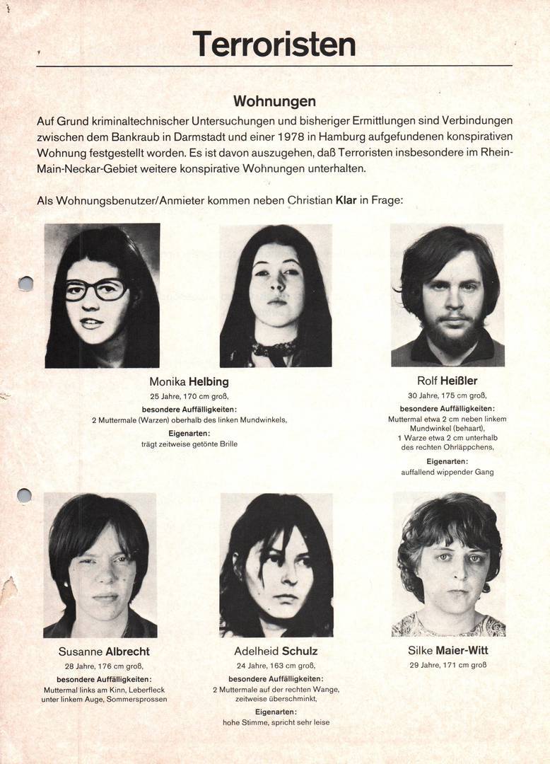 Fahndungsplakate RAF im August 1979