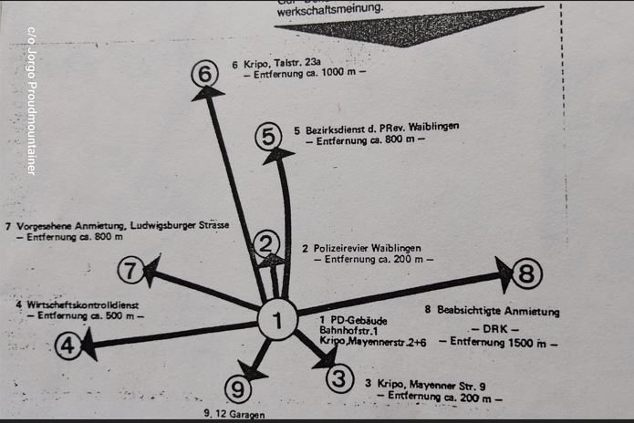 In der Nacht des 08.02.1982 gab es einen Brandanschlag auf das Rathaus in Weinstadt-Beutelsbach: Mit einem Stein warfen zunächst unbekannte Täter gegen 02.10 Uhr eine Scheibe ein und zwei Molotow-Cocktails hinterher. Damit entstand ein Brand in drei Büros. Der Schaden wurde auf 30.000 DM geschätzt!